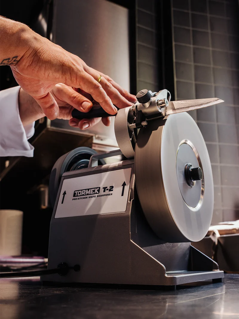 Tormek has been developing knife sharpening machines for professional kitchens for many years. The highly regarded Tormek T-2 Pro Kitchen Knife Sharpener is used by the Swedish Culinary Team and several Michelin star restaurants. The Tormek T-2 meets the high demands on sharpness, simplicity and speed of the professional kitchen.